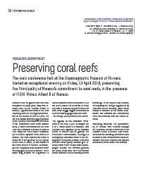 Monaco, His Royal Highness the Prince of Monegasque association linked to the Mo- solutions to save coral reefs from ocean aci-